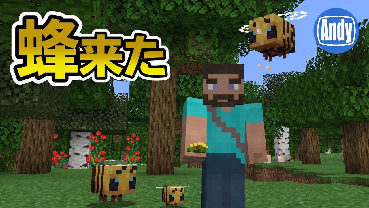 マインクラフト 蜂が可愛すぎた 1 15の新モブを調査 アンディマイクラ Minecraft Je 19w34a ニコニコ動画